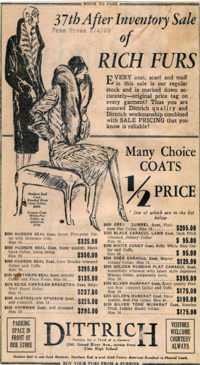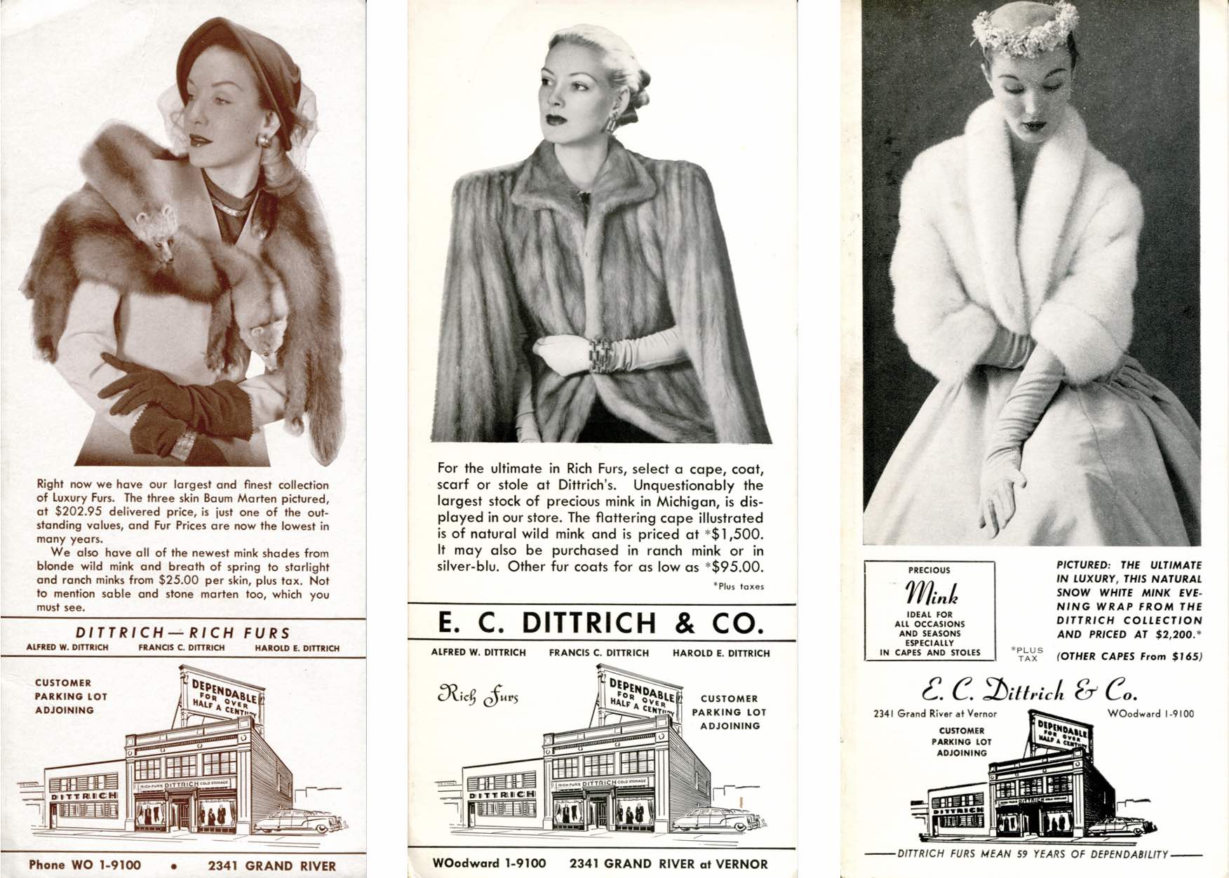 Dittrich Furs remained at the Grand River location until 1965 when freeway construction mandated another move, this time to its current location on Third Avenue.