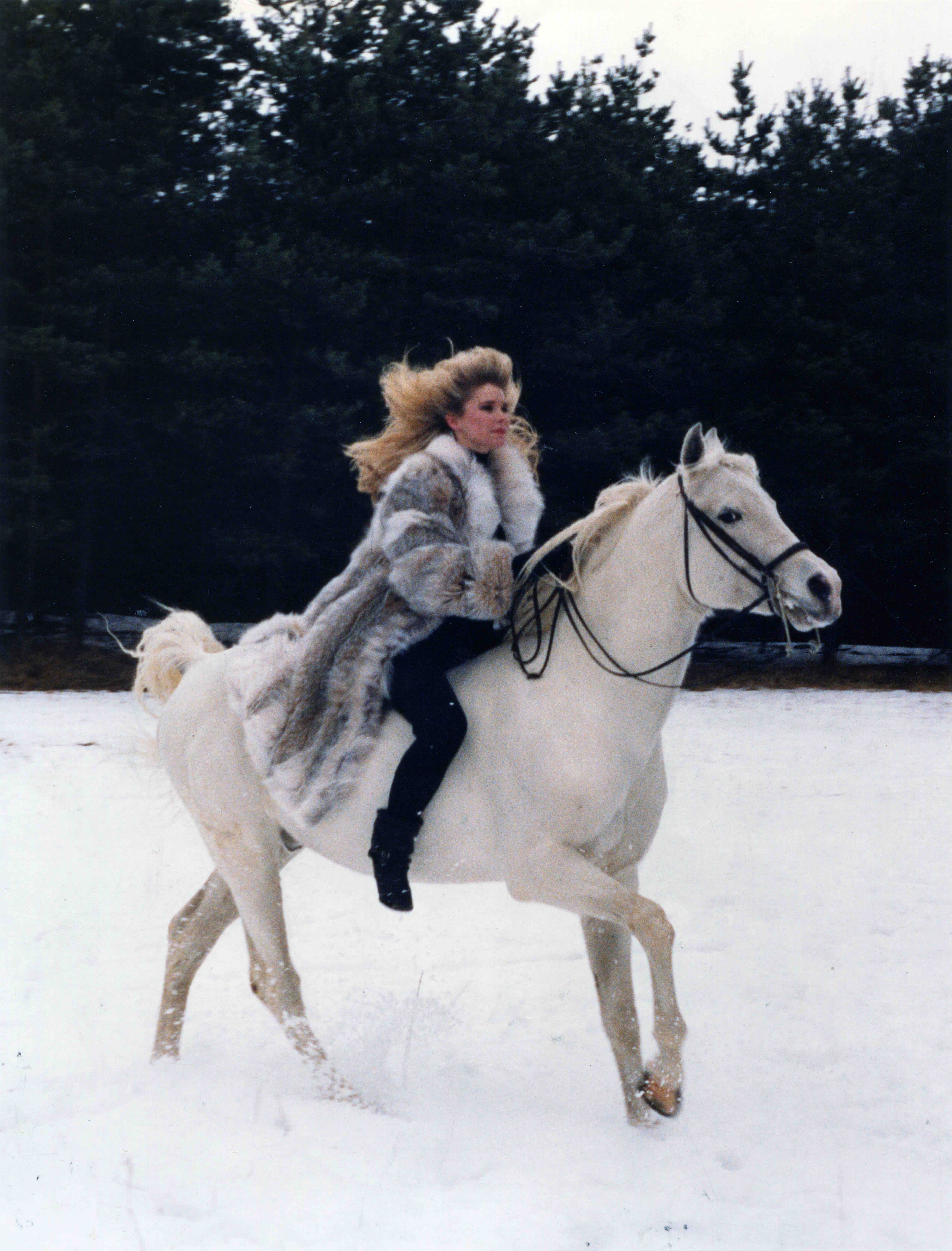 1983 – The famous “fur-wearing Horse Rider” commercial was filmed. Equestrian/model: Julie Frazer